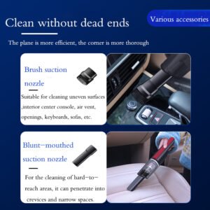 The Wired Car Vacuum Cleaner -boasts a powerful suction capability designed specifically for in-car cleaning needs. Equipped with a high-efficiency motor, it effortlessly picks up dirt, dust, crumbs, and debris from vehicle seats, carpets, dashboards, and even hard-to-reach areas like cup holders and seat gaps. Its compact and ergonomic design ensures ease of use, making it an ideal choice for keeping your car interior spotless and fresh.